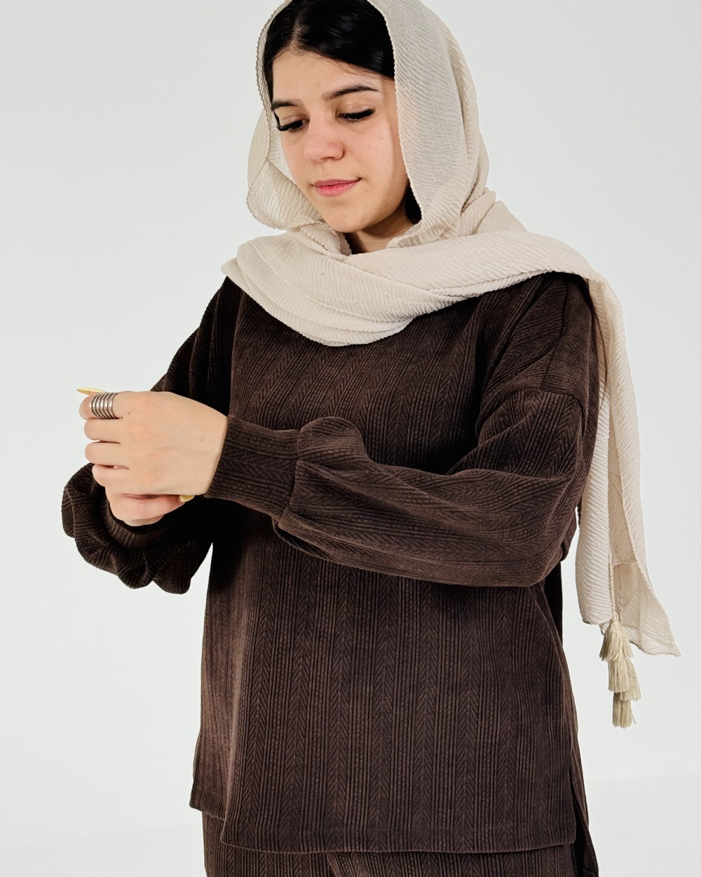 | سایز | دور سینه | دور کمر | دور بازو | قد آستین | قد لباس | دور ران | قد فاق | قد شلوار |