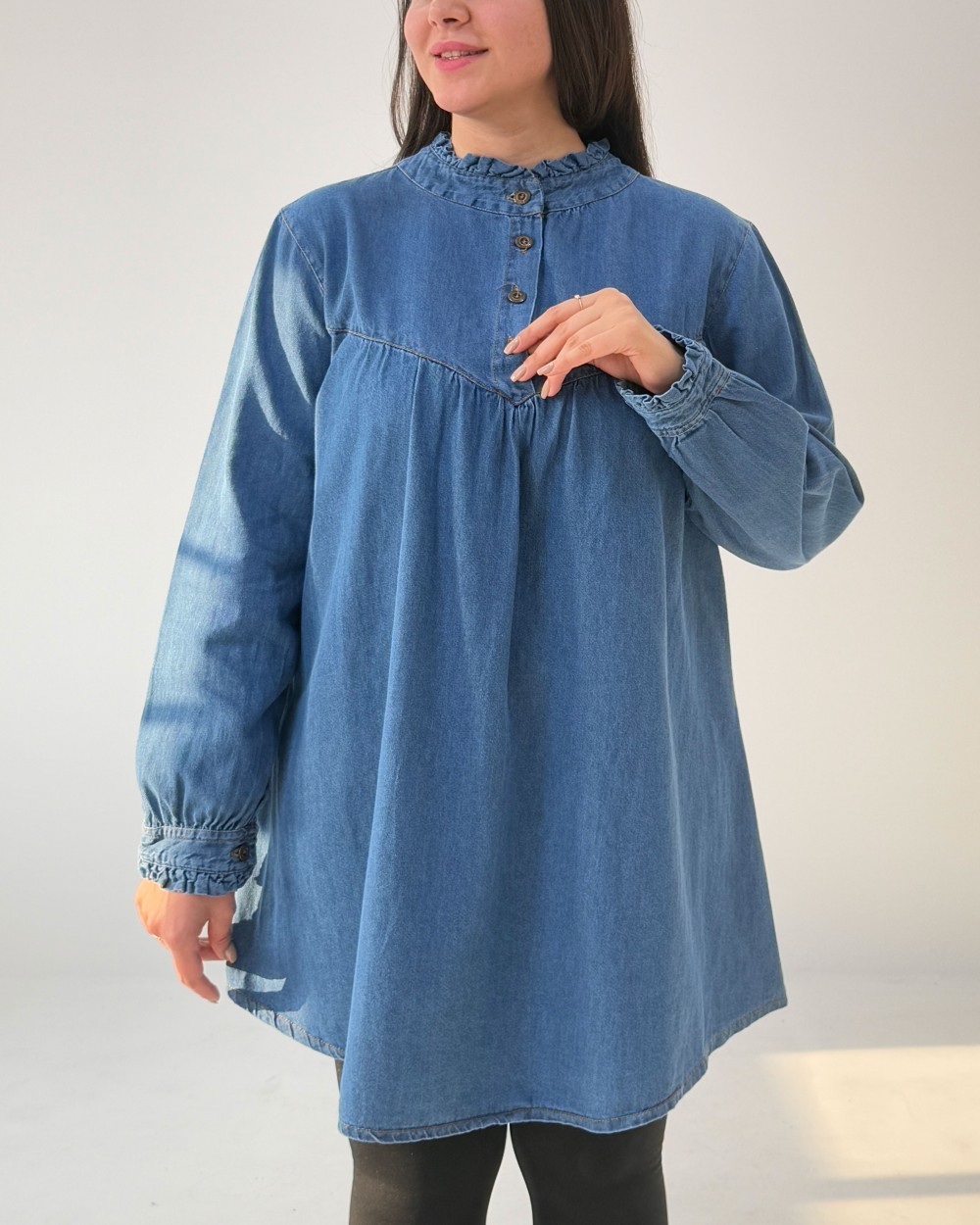 پیراهن مانتویی جین همراه با کیف _ کد محصول 1431