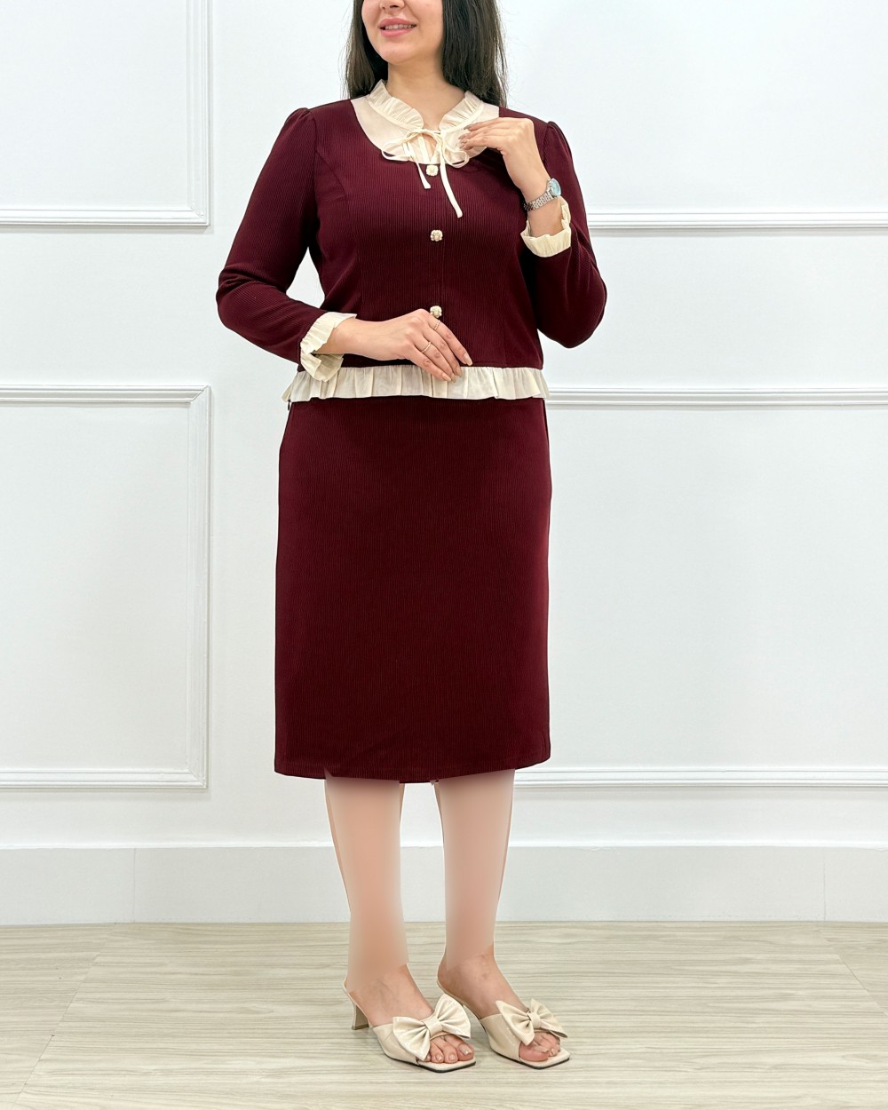 | سایز | دور سینه | قد آستین | قد لباس | دور کمر دامن | قد دامن |