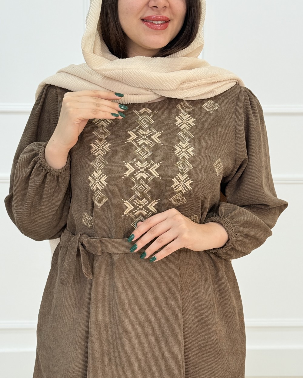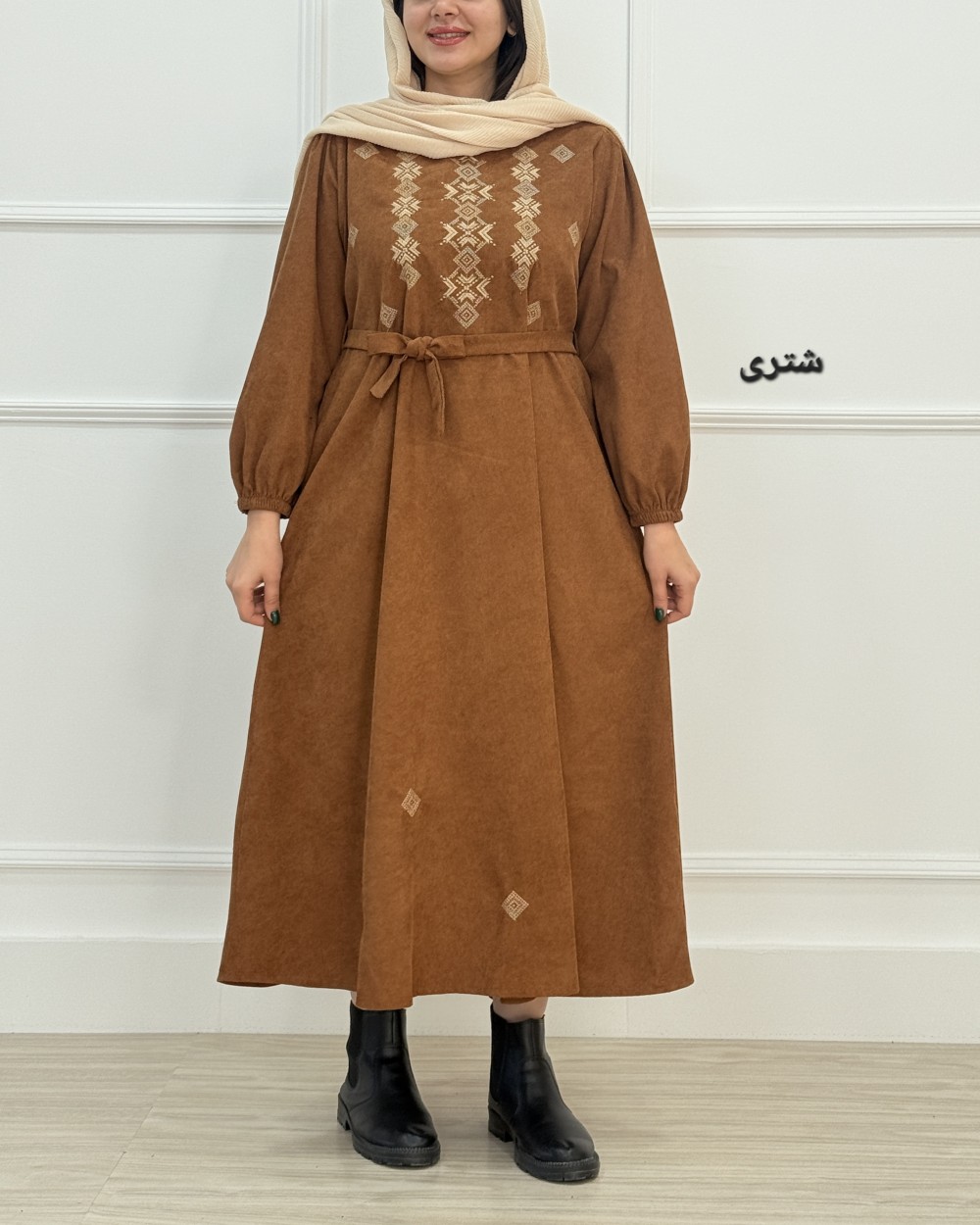 یک پیراهن مانتویی فاخر و زیبا با تنخور خانوم پسند