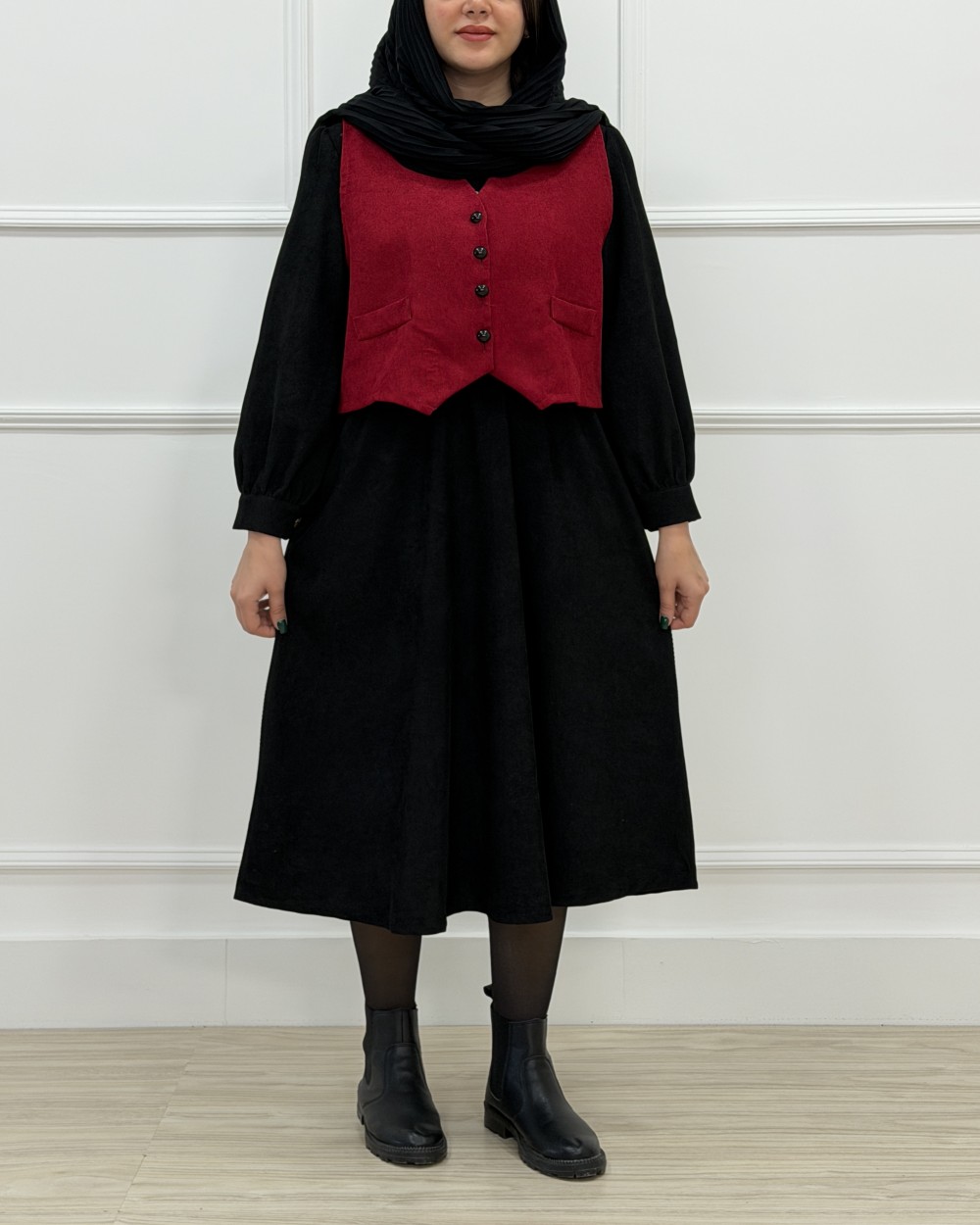 ست پیراهن و وست یلدا ( مشکی قرمز ) کد محصول 1510