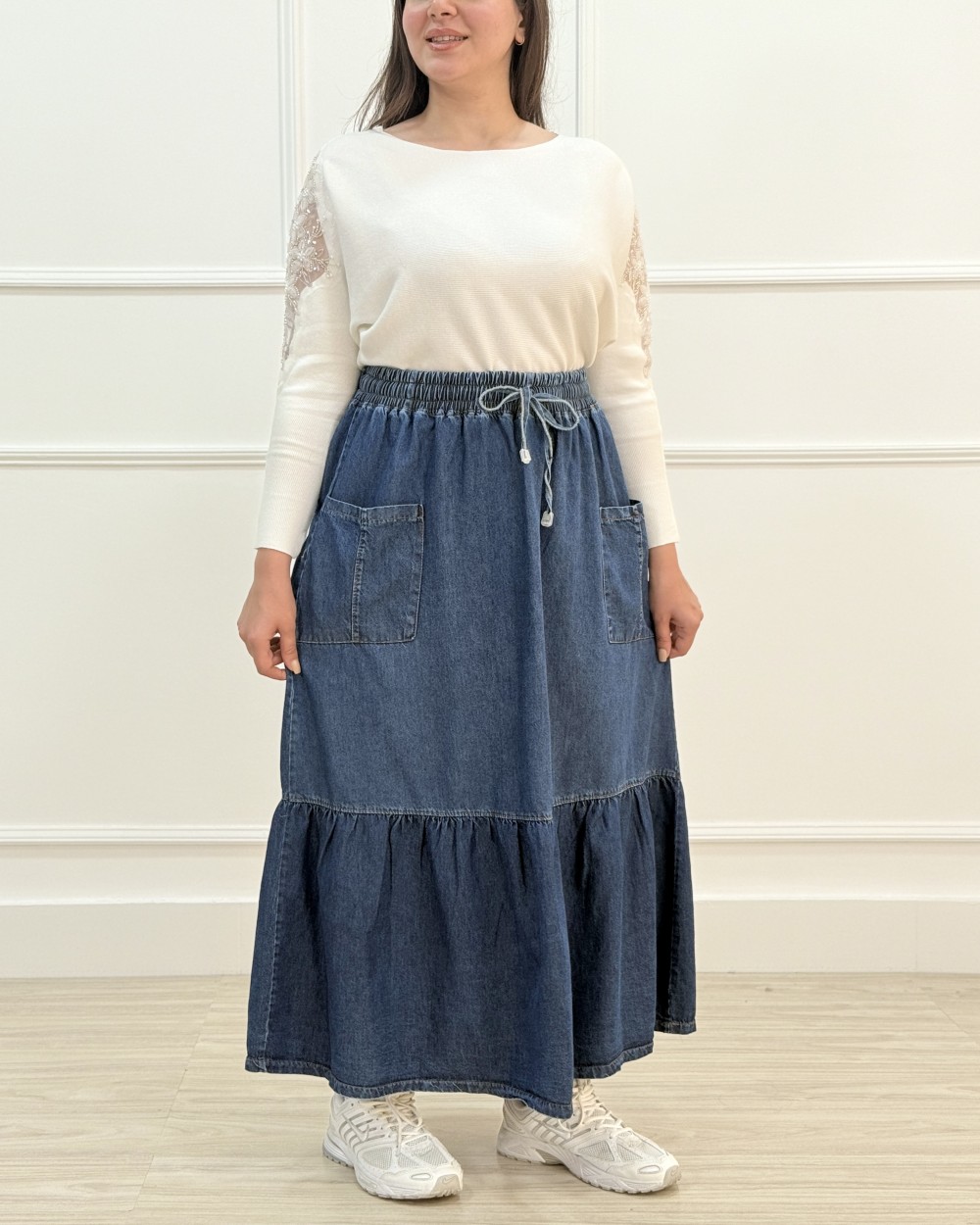 دامن جین دوطبقه جیب دار کد محصول 1567