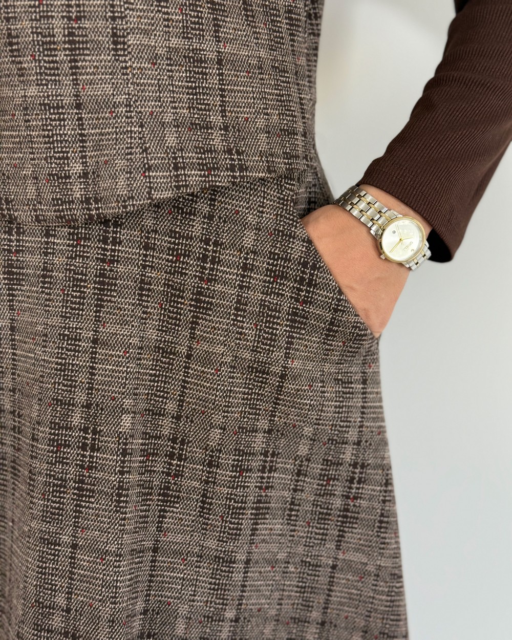 پارچه دامن و وست توییت پشمی وارداتی نرم و لطیف و خیلی کم کشسانی دارد