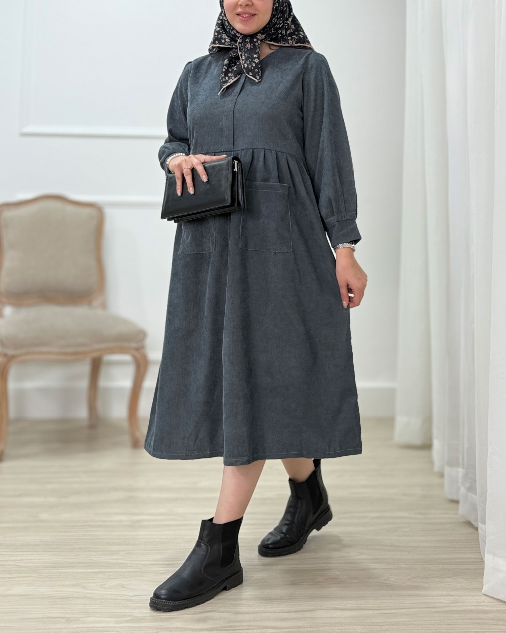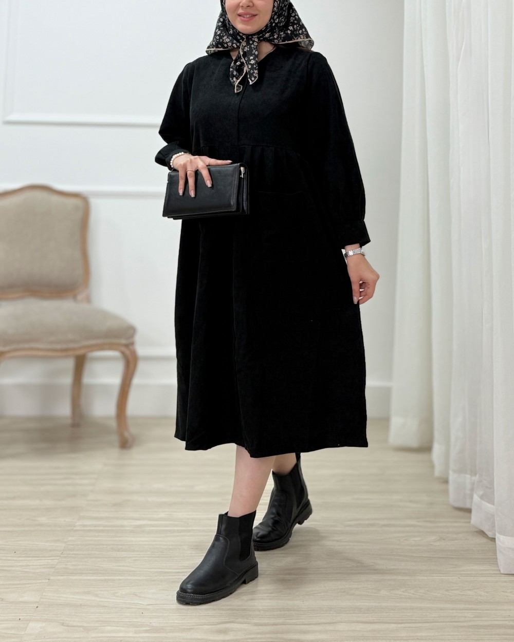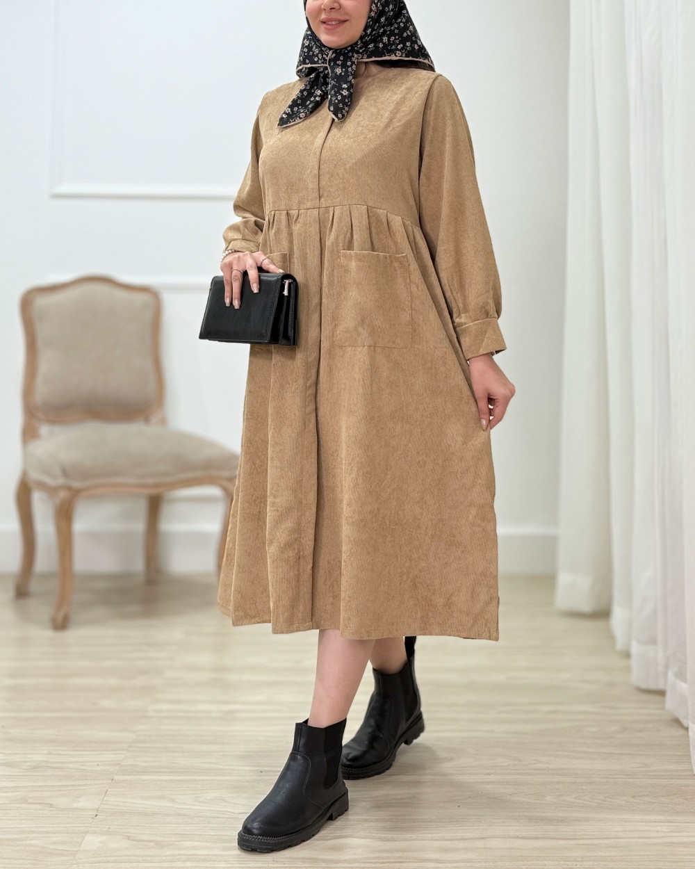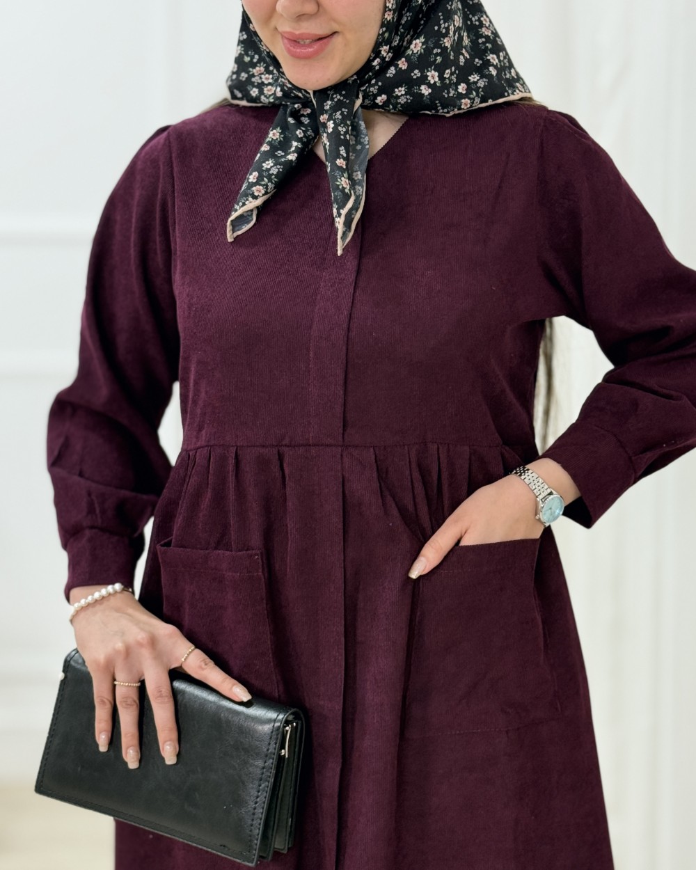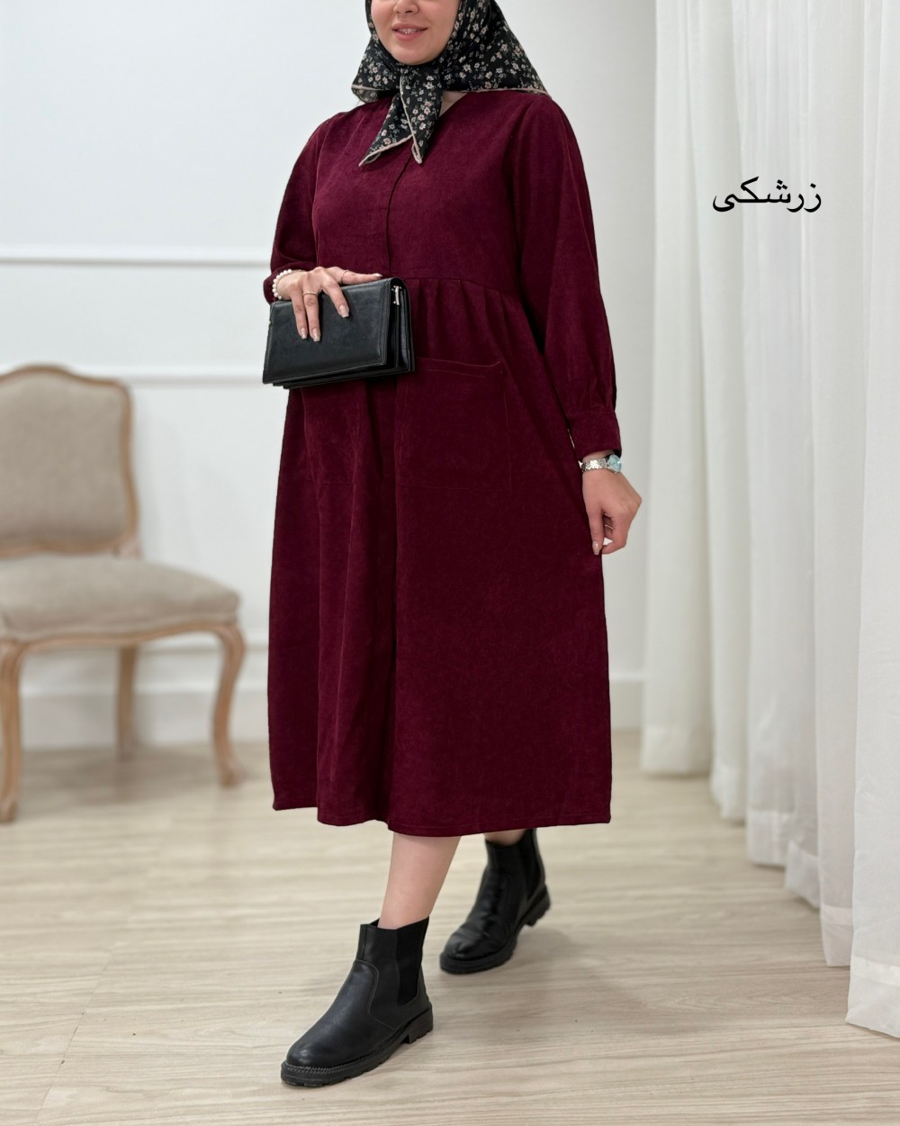 پیراهن بلند مخمل کبریتی مایسا - کد 1397