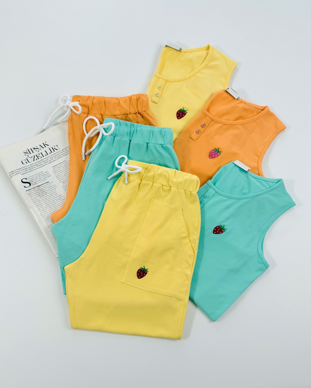 ست تاپ و شلوارک زنانه توت فرنگی کد محصول 1598